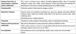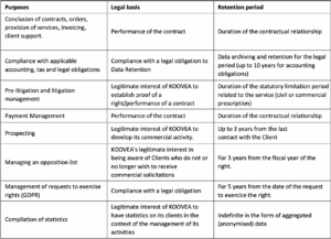 This appendix lists and explains the processing of personal data implemented by KOOVEA in its capacity as data controller in the context of the commercial relationship with the Client.